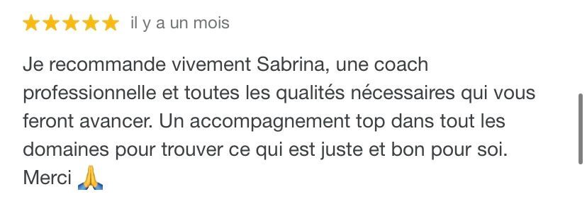 Je suis Sabrina Gobet, coach professionnelle certifiée depuis 2018 et j'ai à ce jour aidé des centaines de personnes à atteindre des objectifs variés.