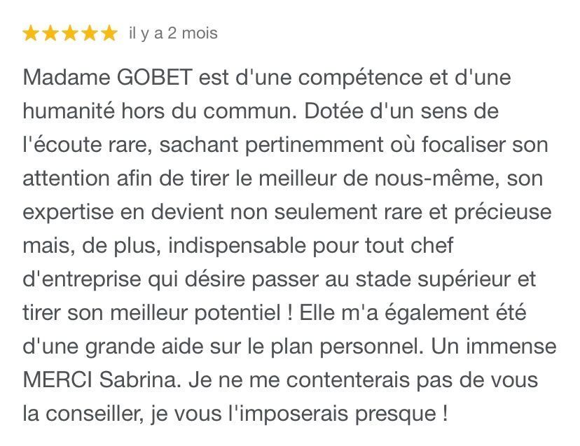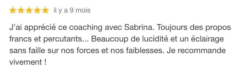 Je suis Sabrina Gobet, coach professionnelle certifiée depuis 2018 et j'ai à ce jour aidé des centaines de personnes à atteindre des objectifs variés.